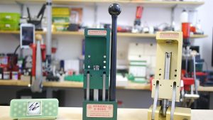 Die SUDAMI X-RING Pressen sind sehr solide gebaut und zeichnen sich durch eine sehr gute Fluchtung sowie einer sehr hohen Wiederholgenauigkeit im oberen Totpunkt aus. Eine spitzen Basis um präzise Munition mit minimalen Rundlauf zu laden. Solide ist übrigens auch die Art der Montage, die bei der SUDAMI X-RING Presse zum Einsatz kommt. Im Gegensatz zu „normalen“ Wiederladepressen wird die SUDAMI X-RING Presse an die Werkbank geklemmt. Hier braucht man keine Bedenken zu haben; die Klemmkraft ist sehr hoch und hält die Presse sicher an Ort und Stelle.